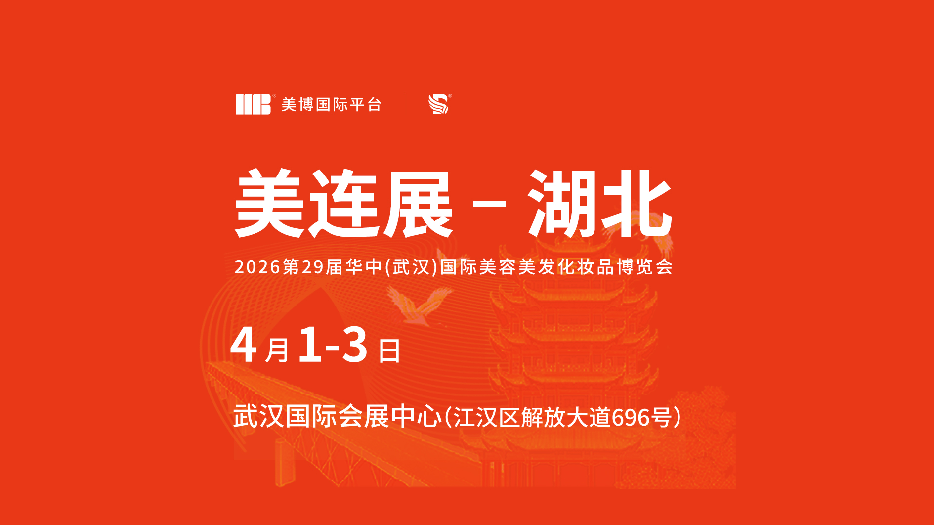 [邀请函]2026第29届华中(武汉)国际美容美发化妆品博览会主承办单位:主办单位:山东美博国际文化传播有限公司承办单位:武汉美贸国际展览服务有限公司支持单位:湖北省美发美容协会湖北省美容化妆品业商会、武汉市美发美容协会、湖北省艾草协会、蕲春县蕲艾产业协会展馆介绍:武汉国际会展中心位于武汉市汉口解放大道696号,总建筑面积12.7万平方米,十大展厅面积5万平方米可设置280...